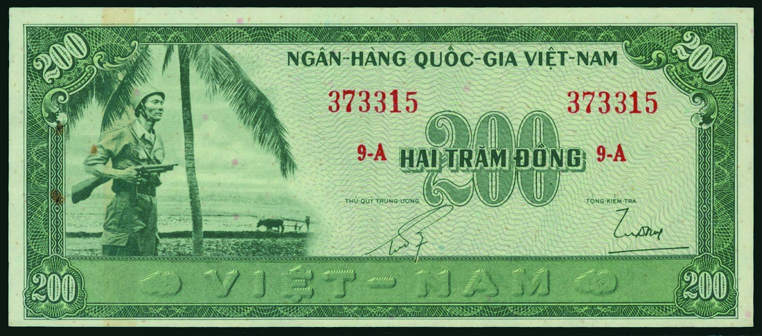 South Vietnam, lot of 2 issued notes for 100dong (1955) and 200dong (1955), black and green respectively