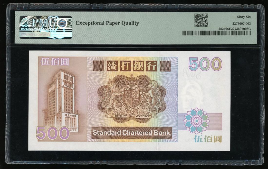 1992年渣打銀行伍佰圓,編號L 976651,PMG 66EPQ,評級紀錄中之季軍分,市場大熱
