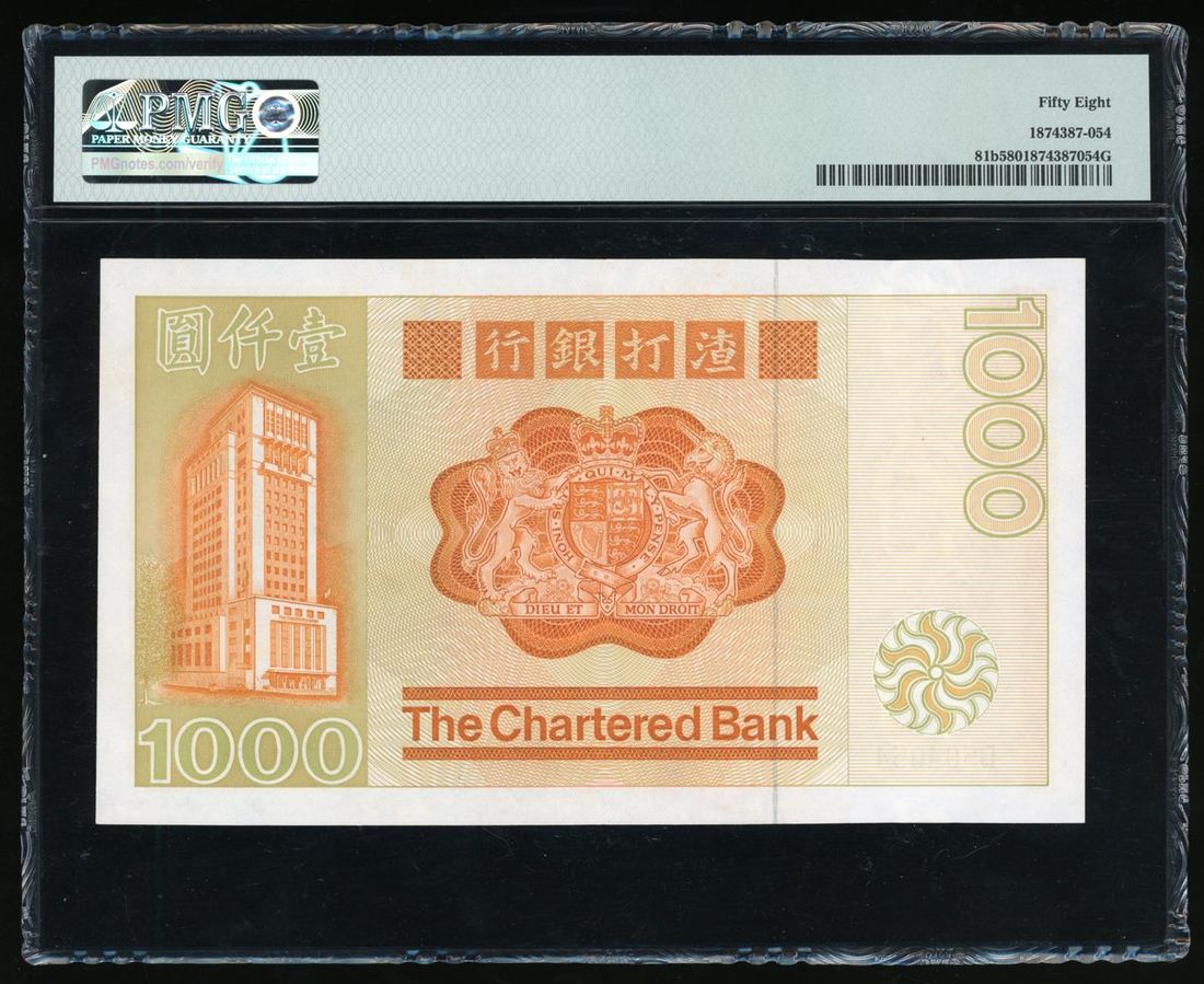 1982年渣打銀行壹仟圓,編號B 504054,PMG 58EPQ