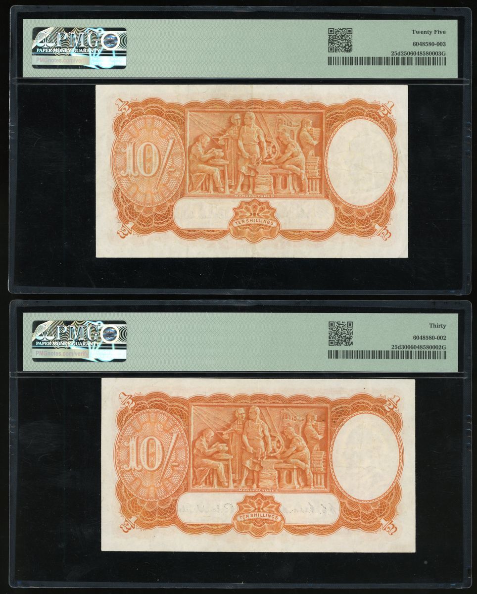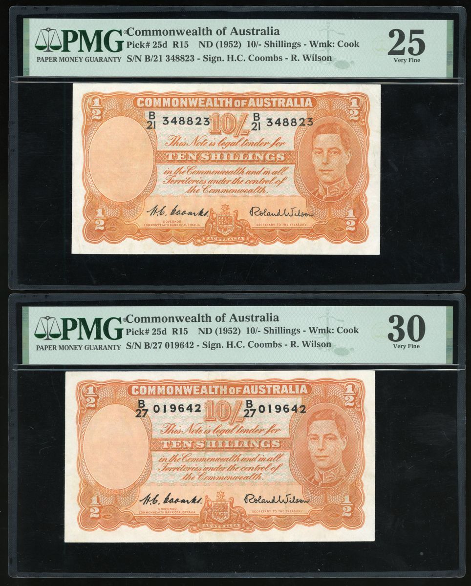 Commonwealth of Australia, A Pair of 10 Shilings, ND (1952), serial number B21-348823, B27-019642,