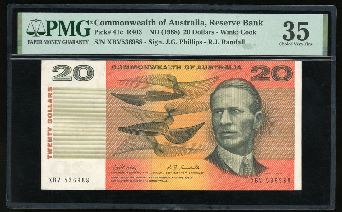 Reserve Bank of Australia, $20, ND (1968), serial number XBV536988, (Pick 41c), PMG 35 Choice Very Fine