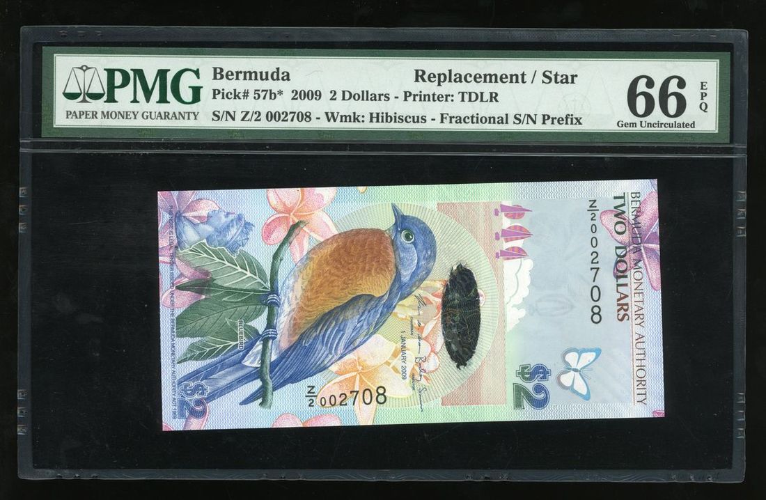 Bermuda, Monetary Authority, replacement $2, 2009, serial number Z/2 002708, (Pick 57b*), PMG 66EPQ Gem Uncirculated.