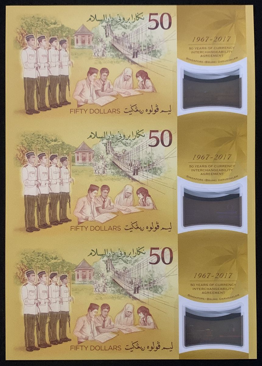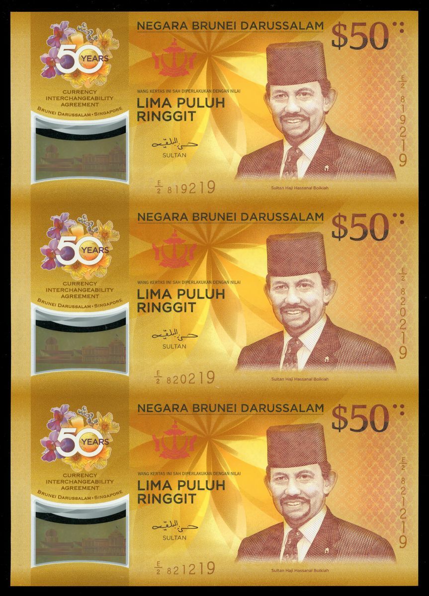 2017年汶萊50令吉三連體, 編號 E/2 819219/820219/821219. UNC品相