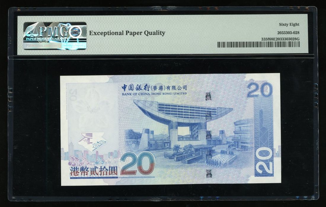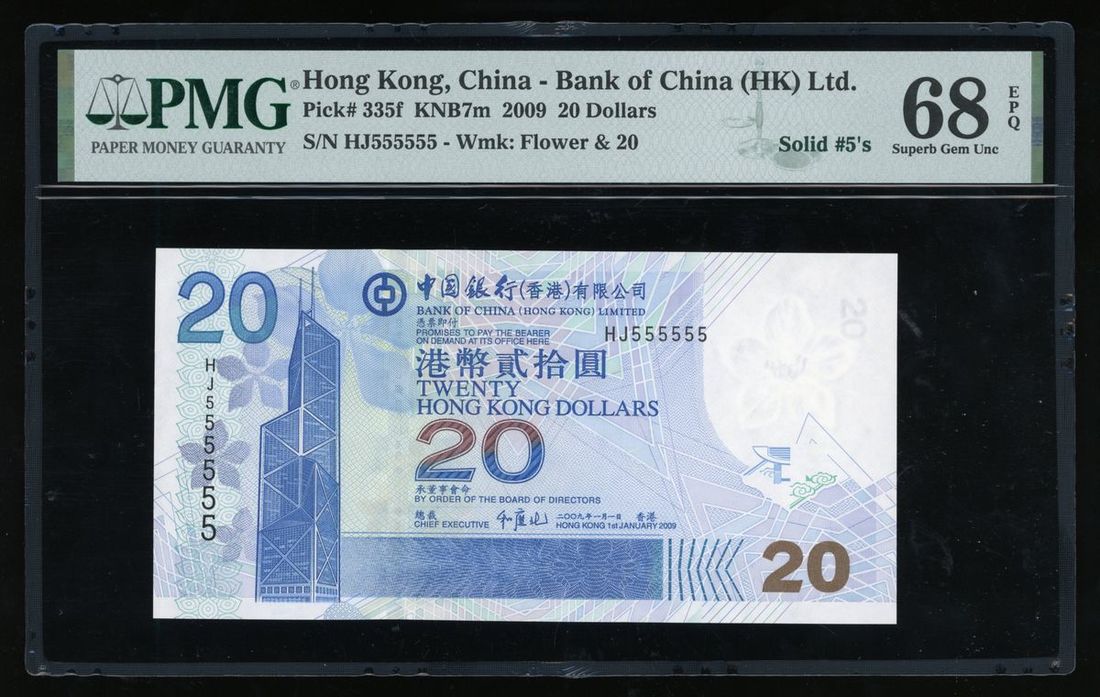 Bank of China, Hong Kong, $20, 1.1.2009, solid serial number HJ555555, (Pick 335f), PMG 68EPQ Superb Gem Uncirculated