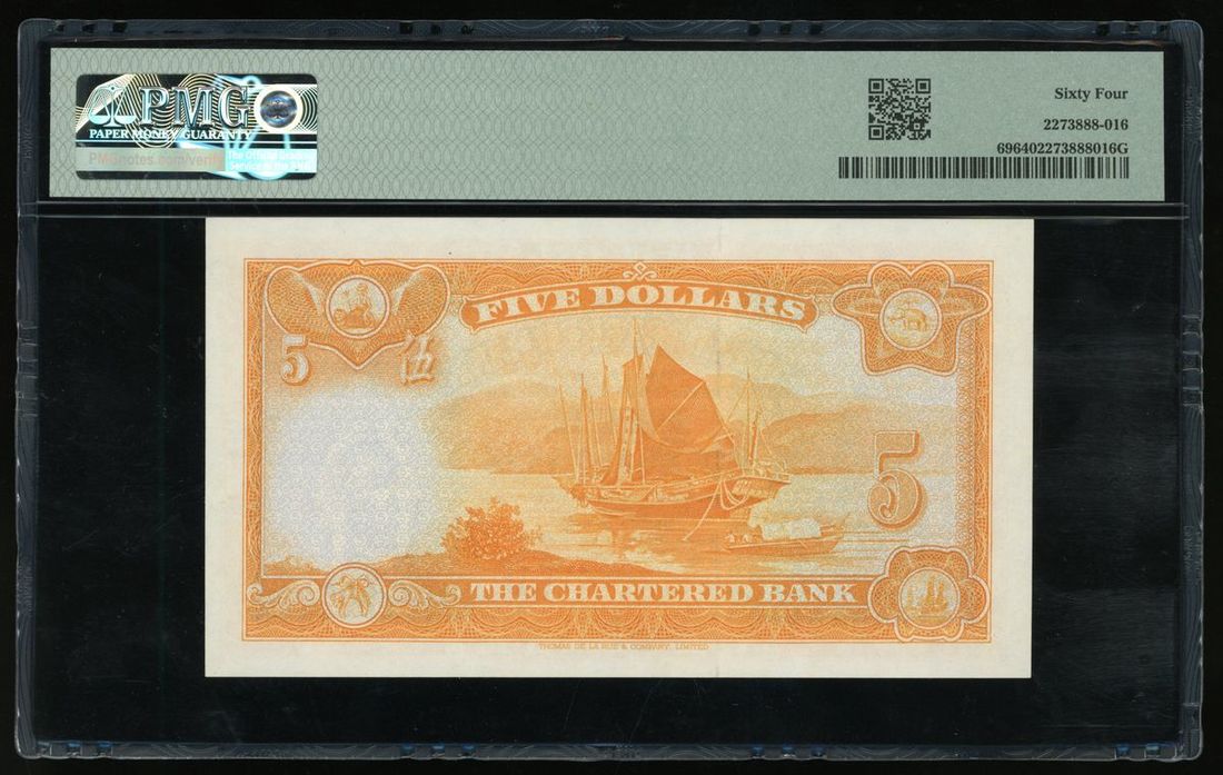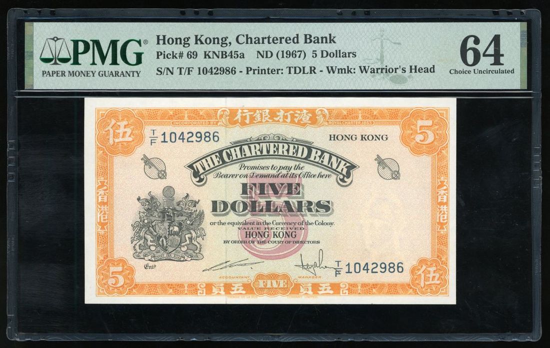 The Chartered Bank, Hong Kong, $5, ND (1967), serial number TF1042986, (Pick 69), PMG 64 Choice Uncirculated