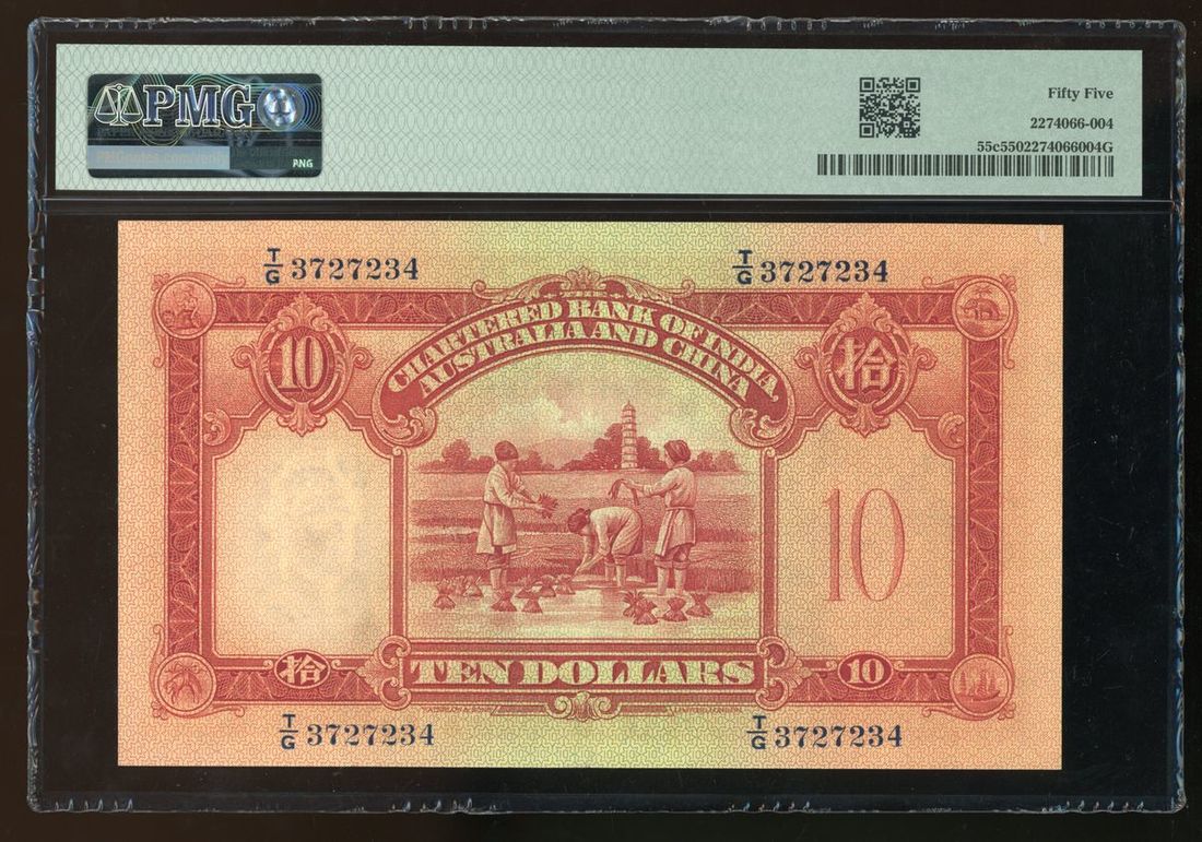 1956年渣打銀行拾員,編號T/G 3727234,PMG 55