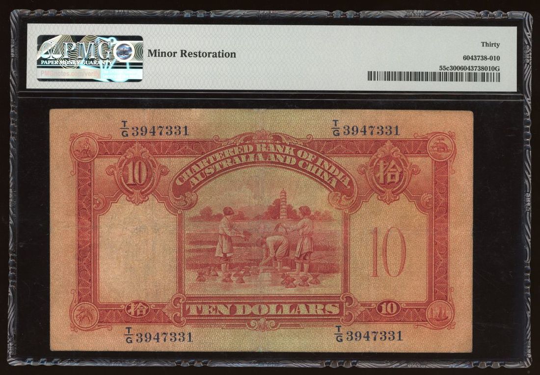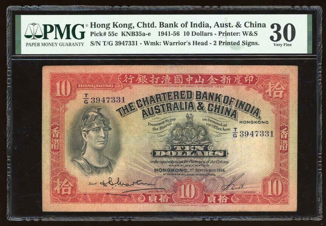1956年渣打銀行拾員,編號T/G 3947331,PMG 30