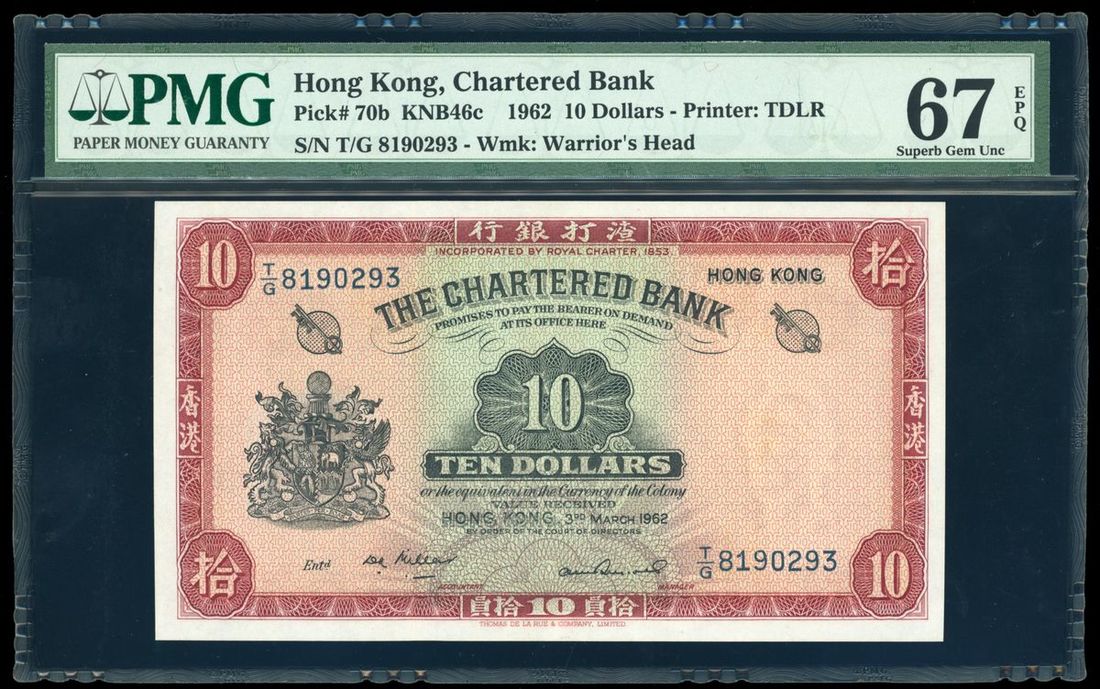 1962年渣打銀行拾員,編號T/G 8190293,PMG 67EPQ