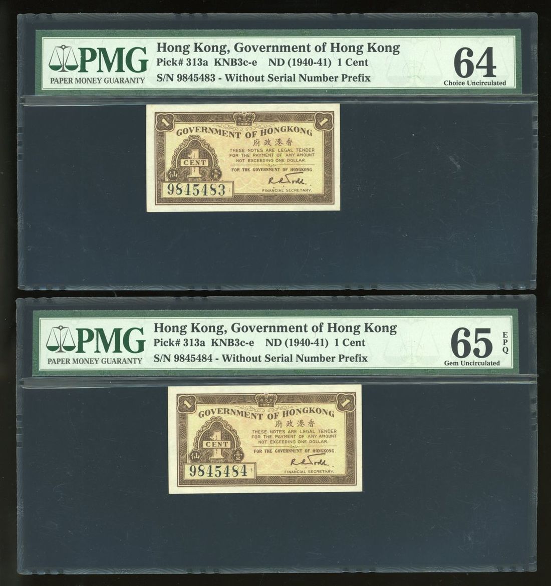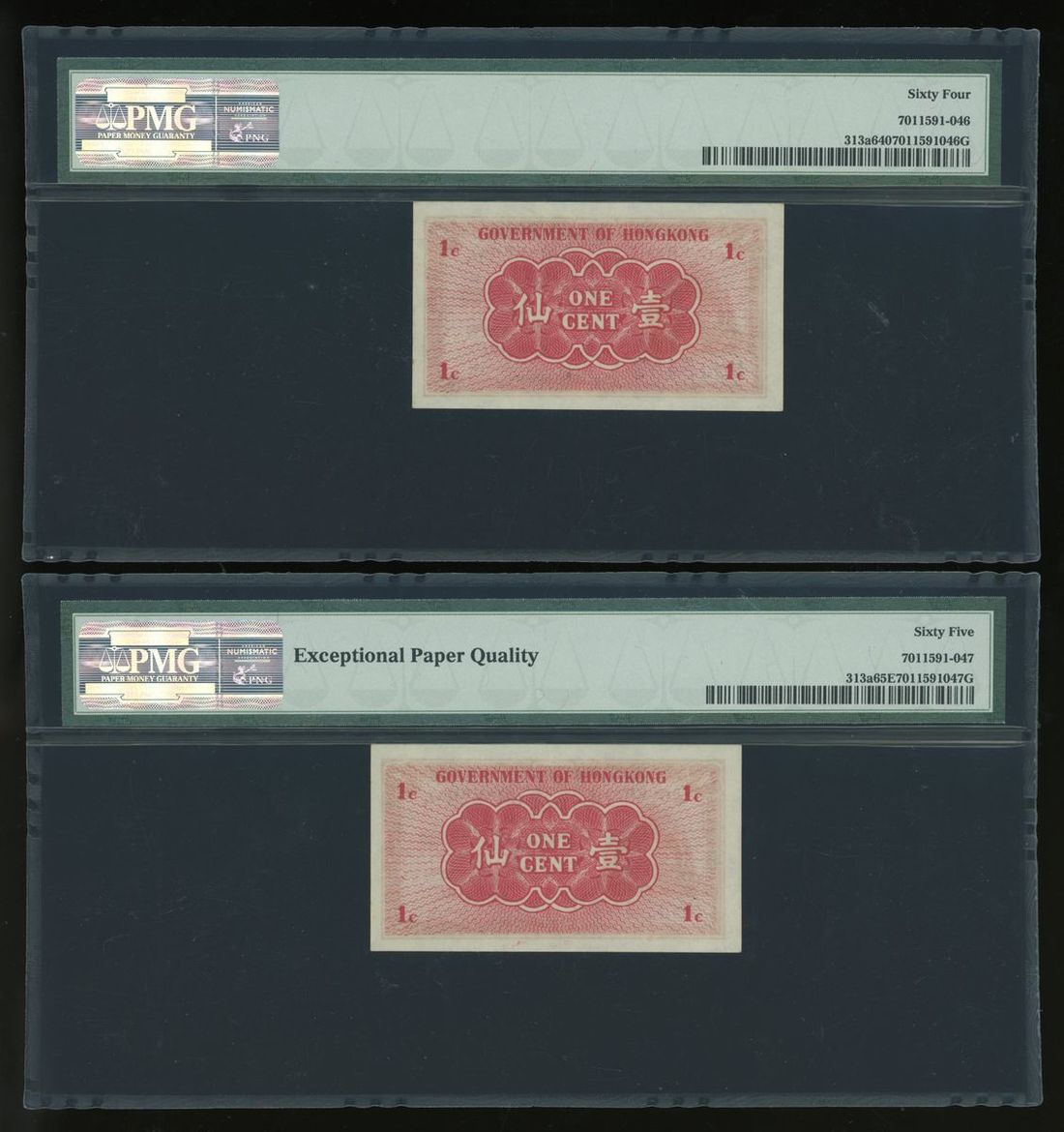 -Government of Hong Kong, consecutive 1 cents (2), (1940-41), PMG 65EPQ / 64,