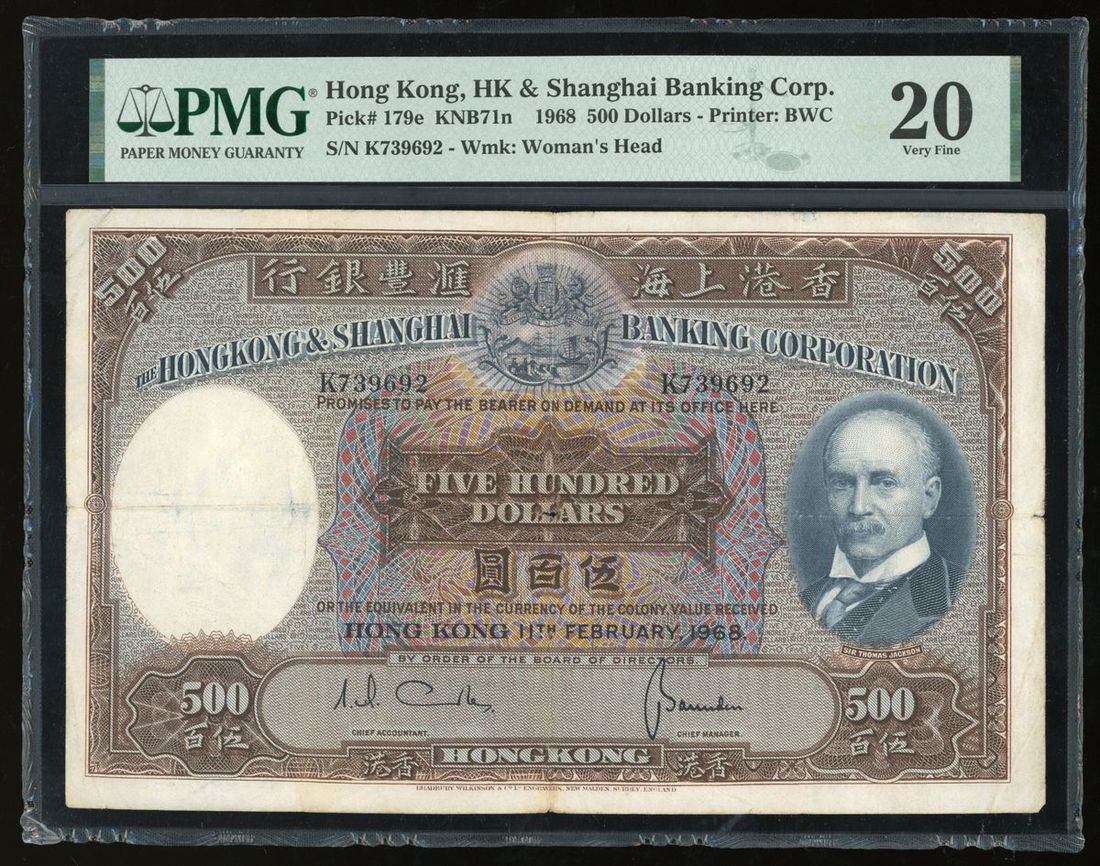The Hongkong and Shanghai Banking Corporation, $500, 11.2.1968, K739692,