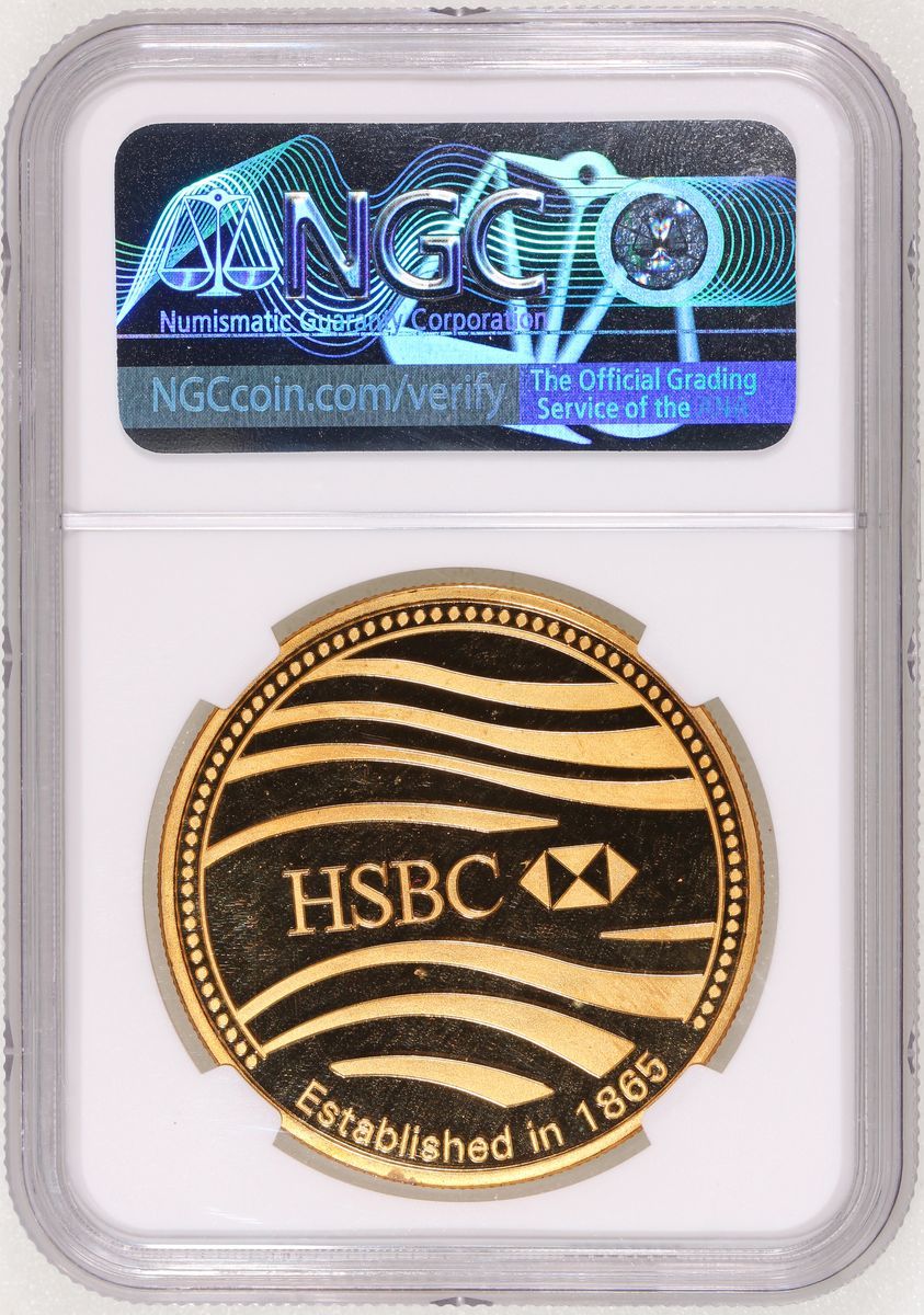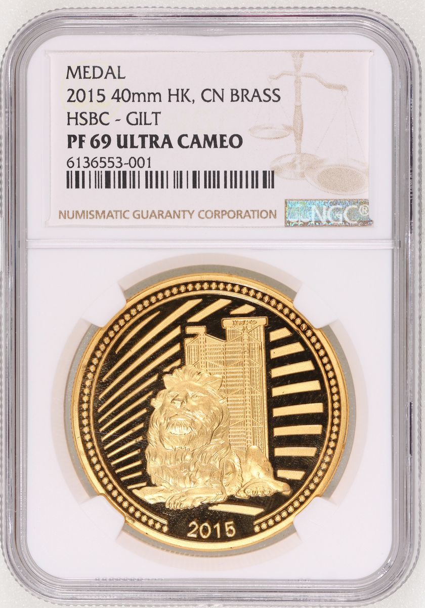 HSBC, [NGC PF69] gilted brass medal, 2015, NGC PF69 Ultra Cameo. #6136553-001. NGC Top Pop