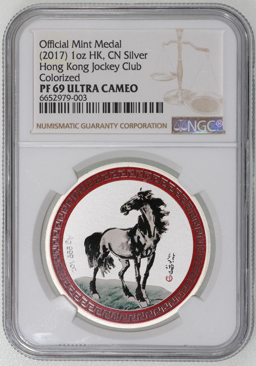 Hong Kong Jockey Club, [NGC PF69] Official Mint Colorized Silver Medal, 2017, weight 1 oz containing 0.999 silver, Galloping Horse from Xu Bei Hong on obverse,