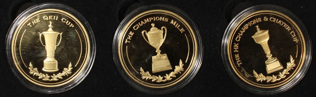 The Hong Kong Jockey Club, a group of 3x medals, no date, "The QEII Cup", "The Champions Mile" and "The HK Champions & Chater Cup", uncirculated, with original box (a set of 3).