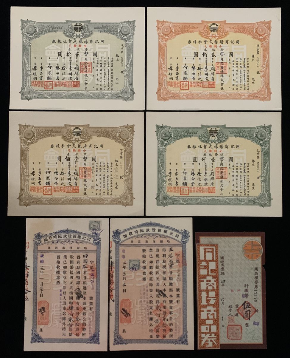 Republic of China, 25th Year United Nationalist Loan, 100 yuan, 6% Interest per Annum, Year 25 (1936), serial number 010578, with 17 coupons, PMG 50
