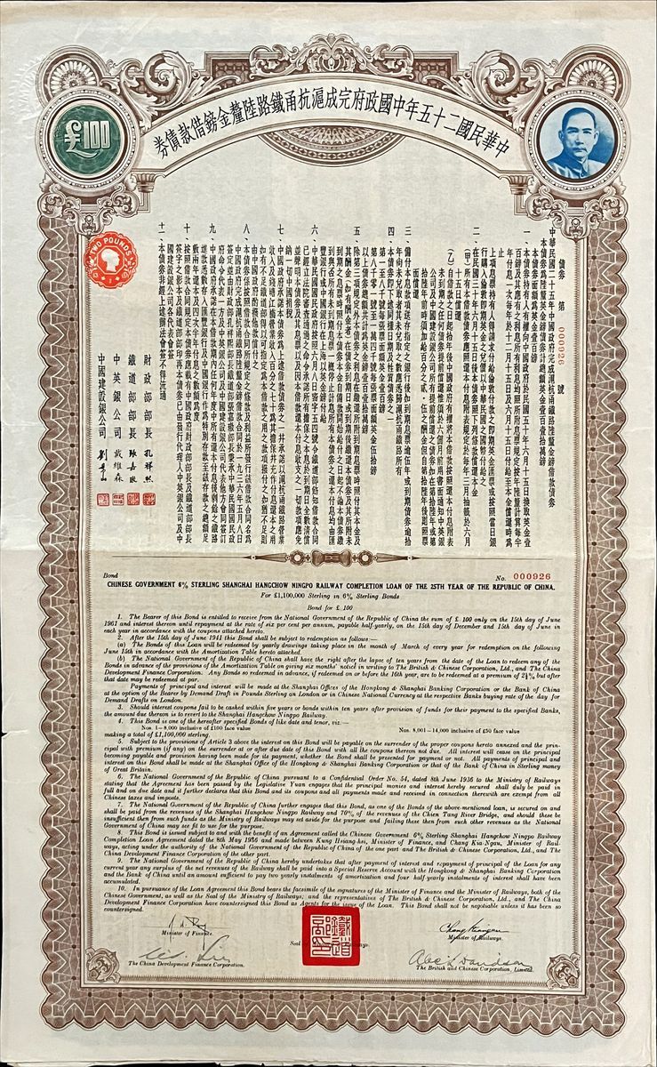 (x) Republican China Liberty Bond, consecutive 5 yuan (2), 4% Annual Interest, Year 26 (1937), serial numbers 0083582/3 both very fine (2)