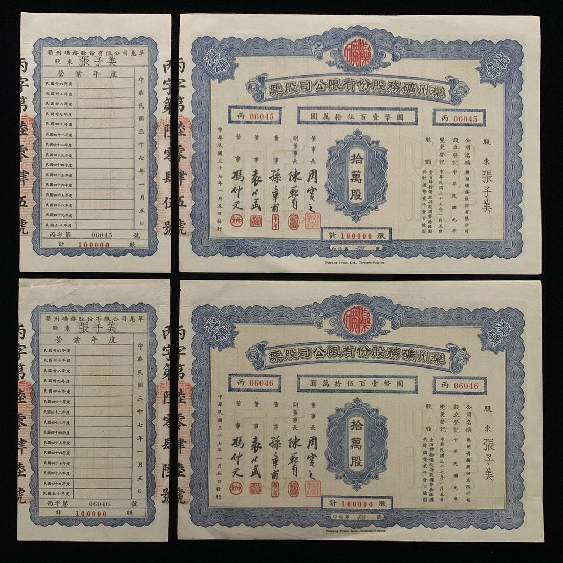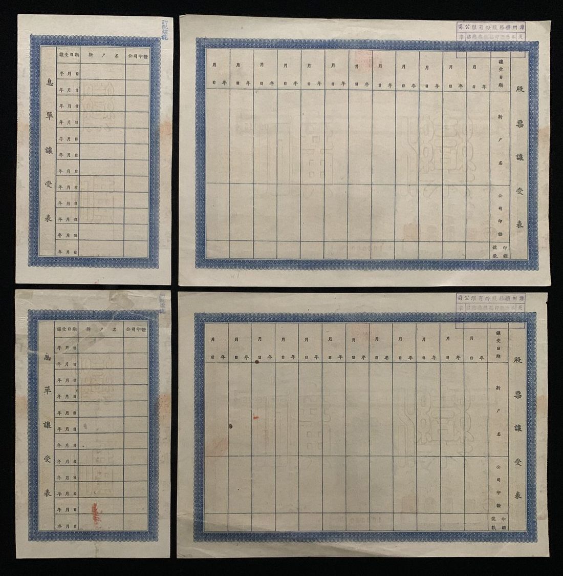 Mei Tai Chemical Industrial Limited, China, an unissued share certificate, ND, serial number 002858, with receipt tab still connected, holes at issue at left, stains, about uncirculated
