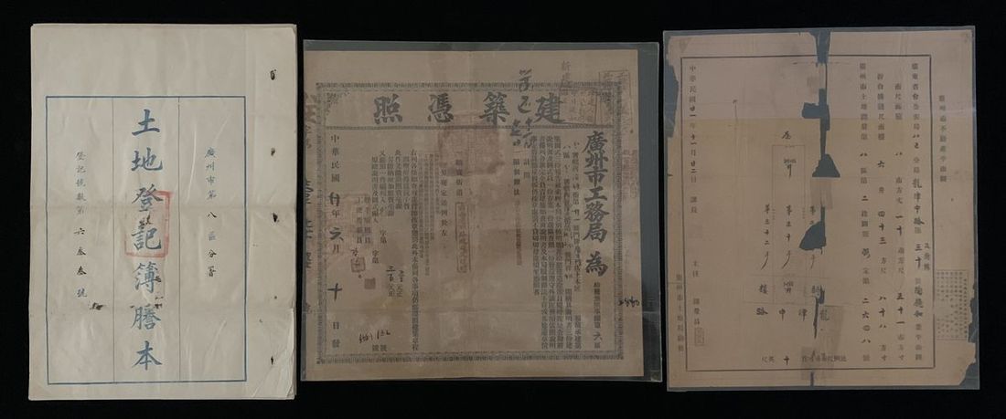 A group of early documents relating to land-use and building in Kwangtung, 1930s, including,