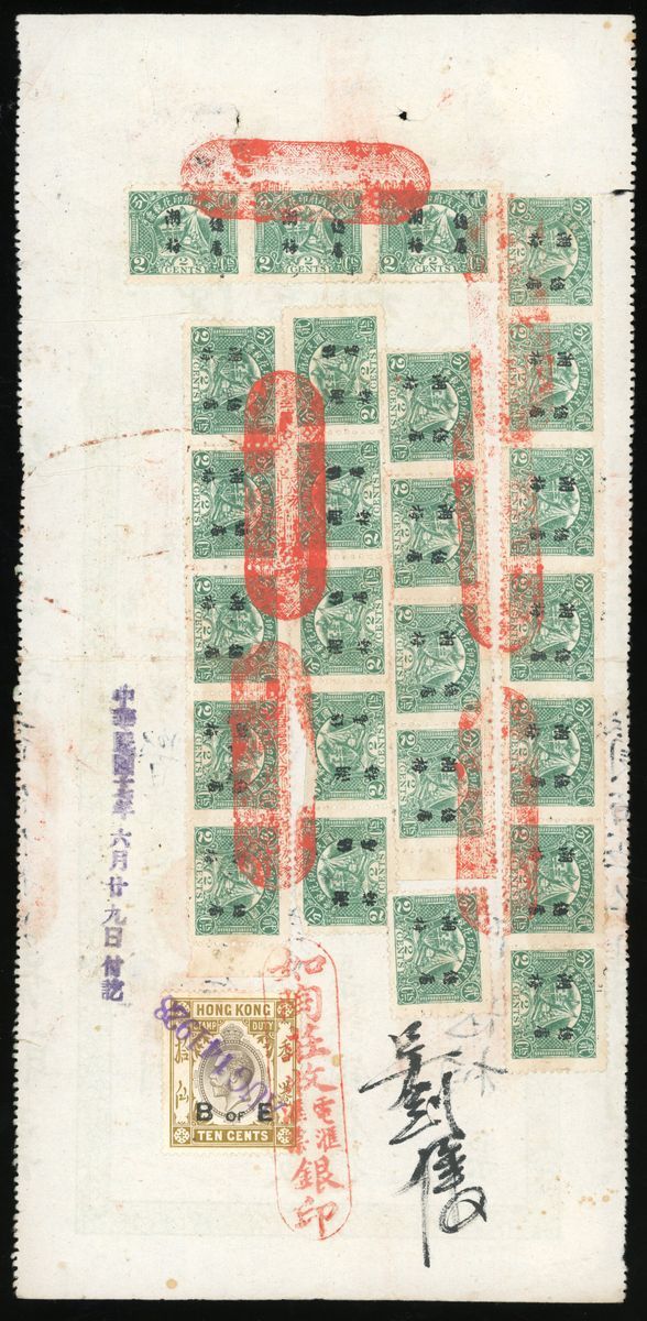 Chen Hou Li Zhan, Private Issue, China, exchange bill of 9900 yuan, serial number 250, issued on 25th June, Wu Chen Year, expiry date 29th June, stamps on reverse, paid in Hong Kong, about fine or so.