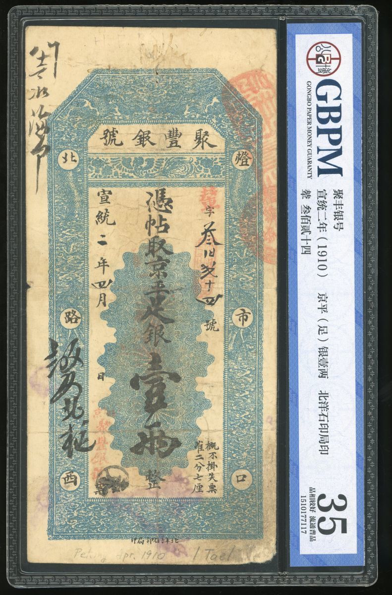 Ju Feng Yin Hao, Private Issue, China, 1 tael, Xuantong Year 2 (1910), serial number 324, GBPM 35, choice very fine