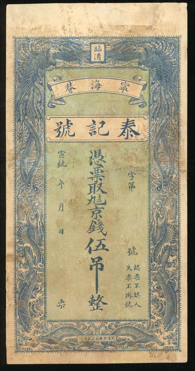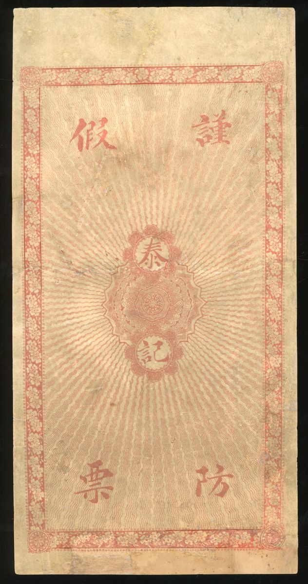 Tai Ji Hao, Private Issue, China, remainder 5 tiao, ND, stained, about extremely fine. Quite ornate