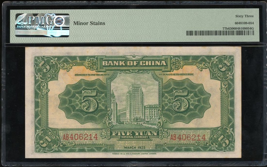 Bank of China, 5 yuan, Year 24(1935), serial number AB406214, without place name,