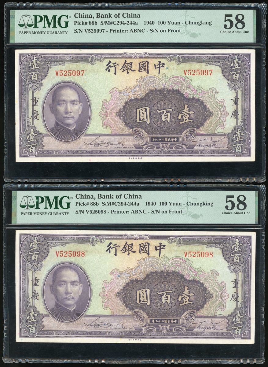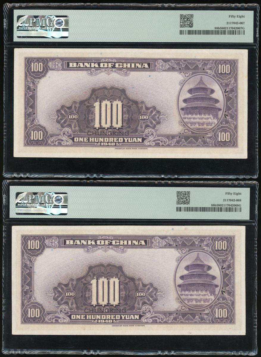 -Bank of China $100 (2), Year 29 (1940), PMG 58,