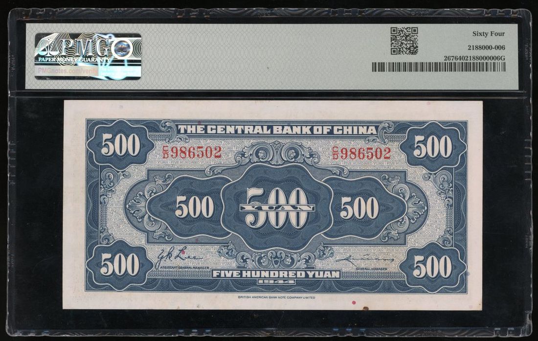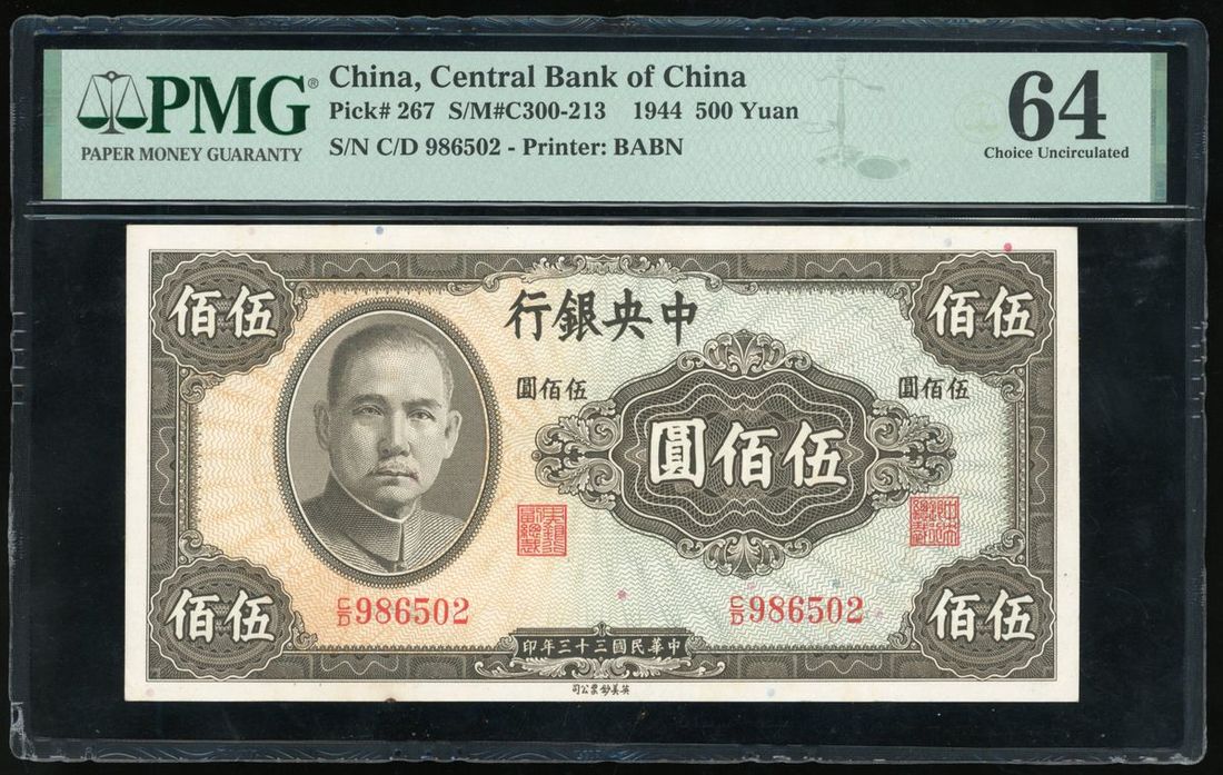 -Central Bank of China, 500 yuan, Year 33, serial number C/D 986502,