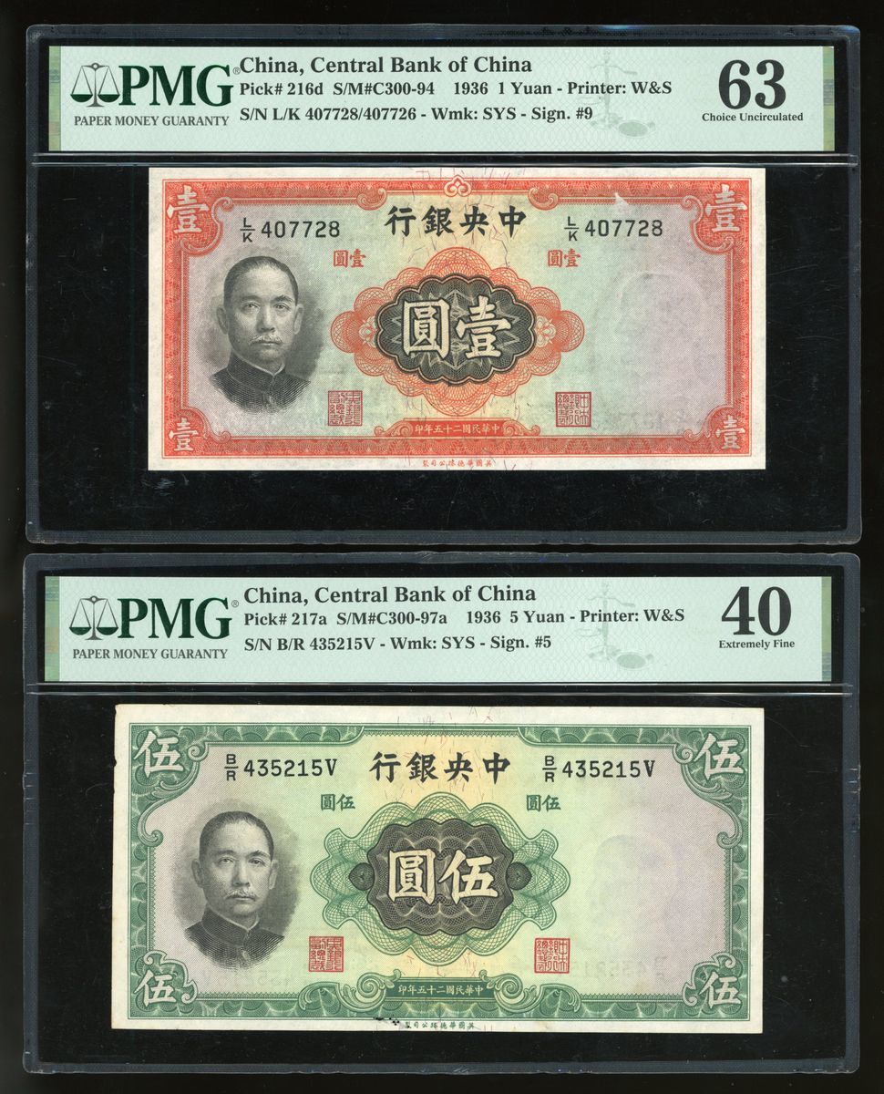 -Central Bank of China, 5 yuan, 1936, Pick 217a, PMG 40,