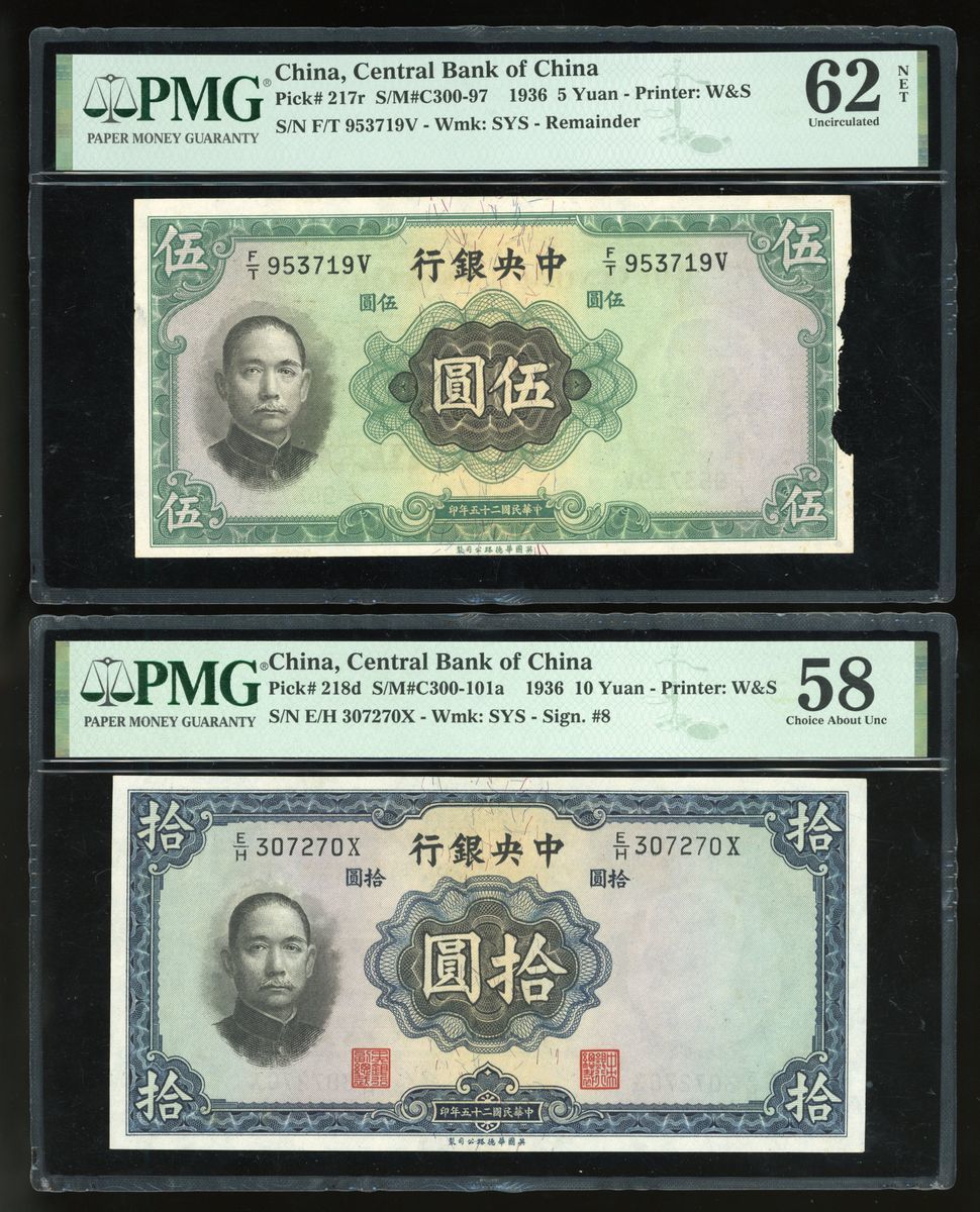 -Central Bank of China, 10 yuan, 1936, Pick 218d, PMG 58,
