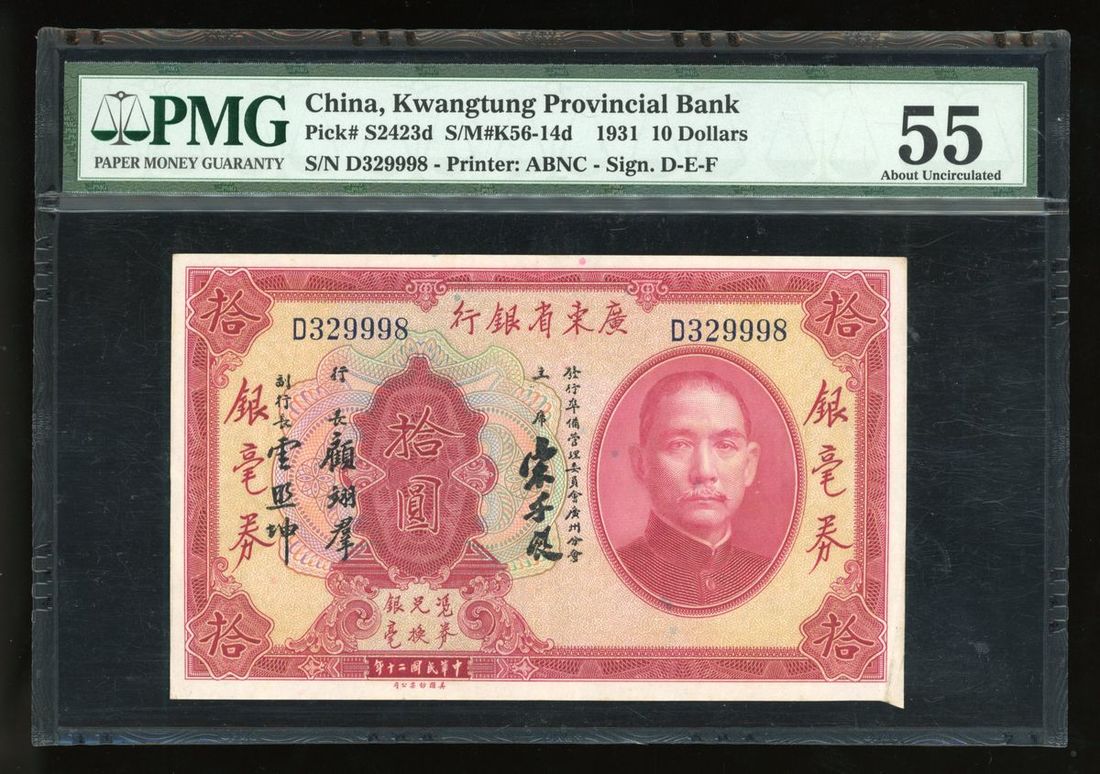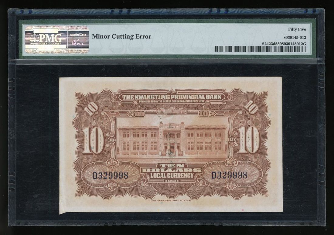 -Kwangtung Provincial Bank, $10, 1931, Pick S2423d, PMG 55, with minor cutting error,