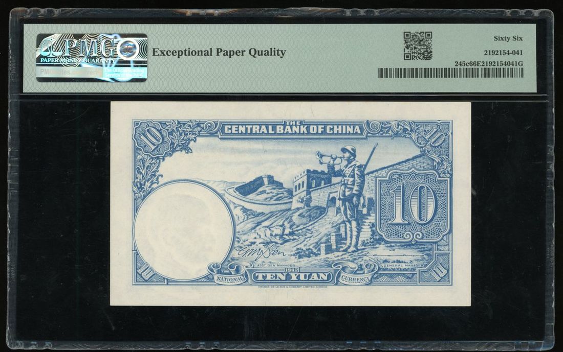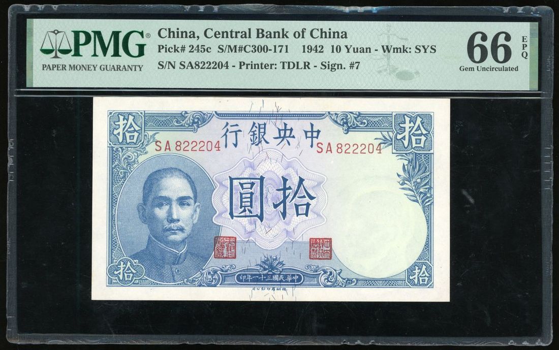 Central Bank of China, 10 yuan, 1942, serial number SA822204, blue, Sun Yat Sen at left,