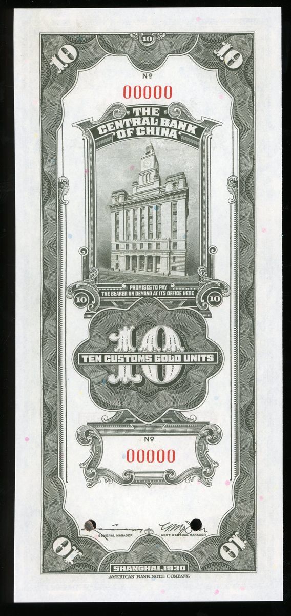 Central Bank of China, specimen 10 yuan CGU, Shanghai, Year 19(1930), serial number 00000, printed by ABNC,