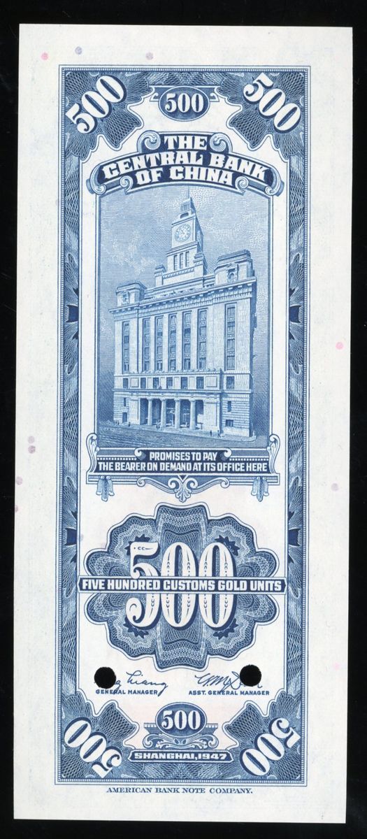 Central Bank of China, specimen 500 yuan CGU, Shanghai, Year 36(1947), serial number 00000, printed by ABNC,