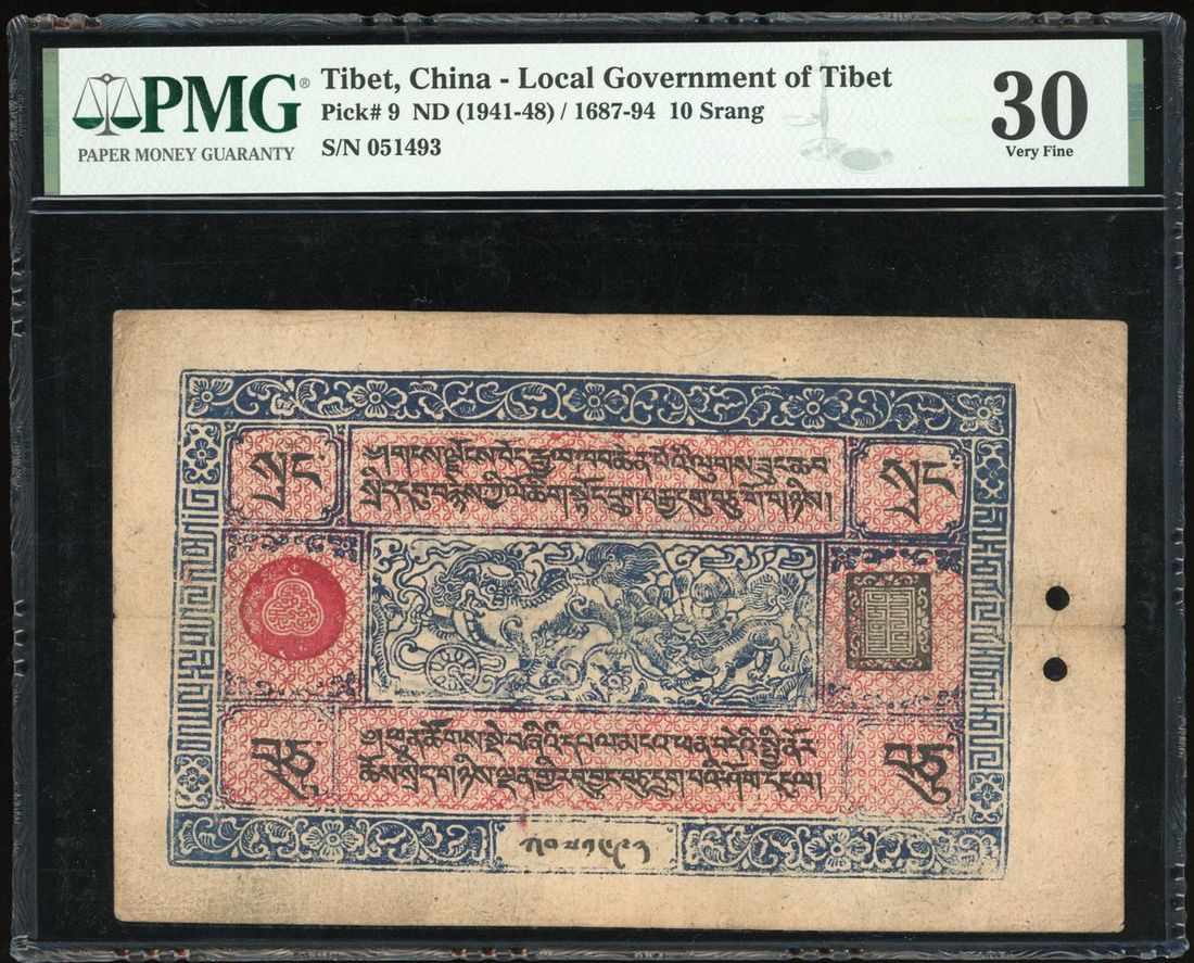 Government of Tibet, 10 srang, ND (1941-48), serial number 051493, (Pick 9), PMG 30