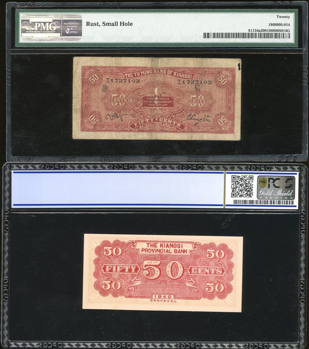Kiangsi, a group of 7x notes, 10 coppers (2), 10 cents, 20 cents, 50 cents (2) and 50 cents (3), issued from various banks including Yu Ming Bank of Kiangsi, Kiangsi Provincial Bank and The Resonstruction Bank of Kiangsi,