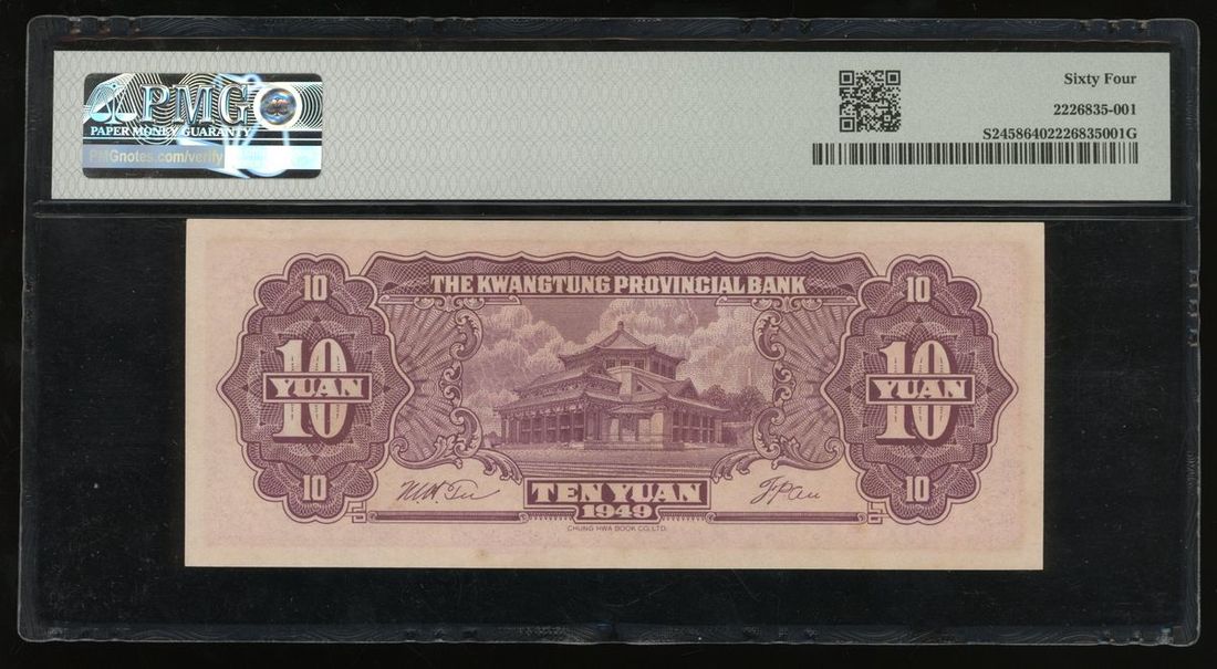(Pick S2458, S2425b, S2421d, S2423d), 1949 10 yuan graded PMG 64 Choice Uncirculated, others Very Fine to Extremely Fine (4)