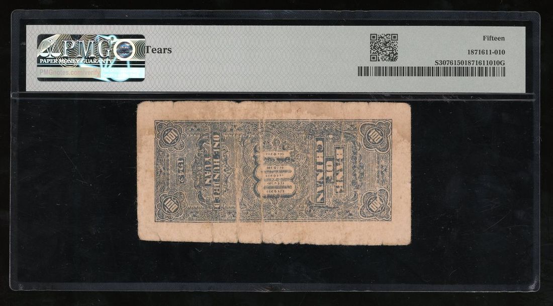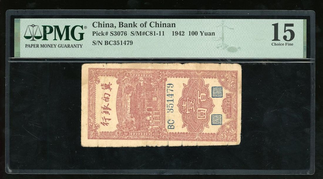 Bank of Chinan, China, 100 yuan, 1942, serial number BC351479, (Pick S3076), PMG 15 Choice Fine (Tears)