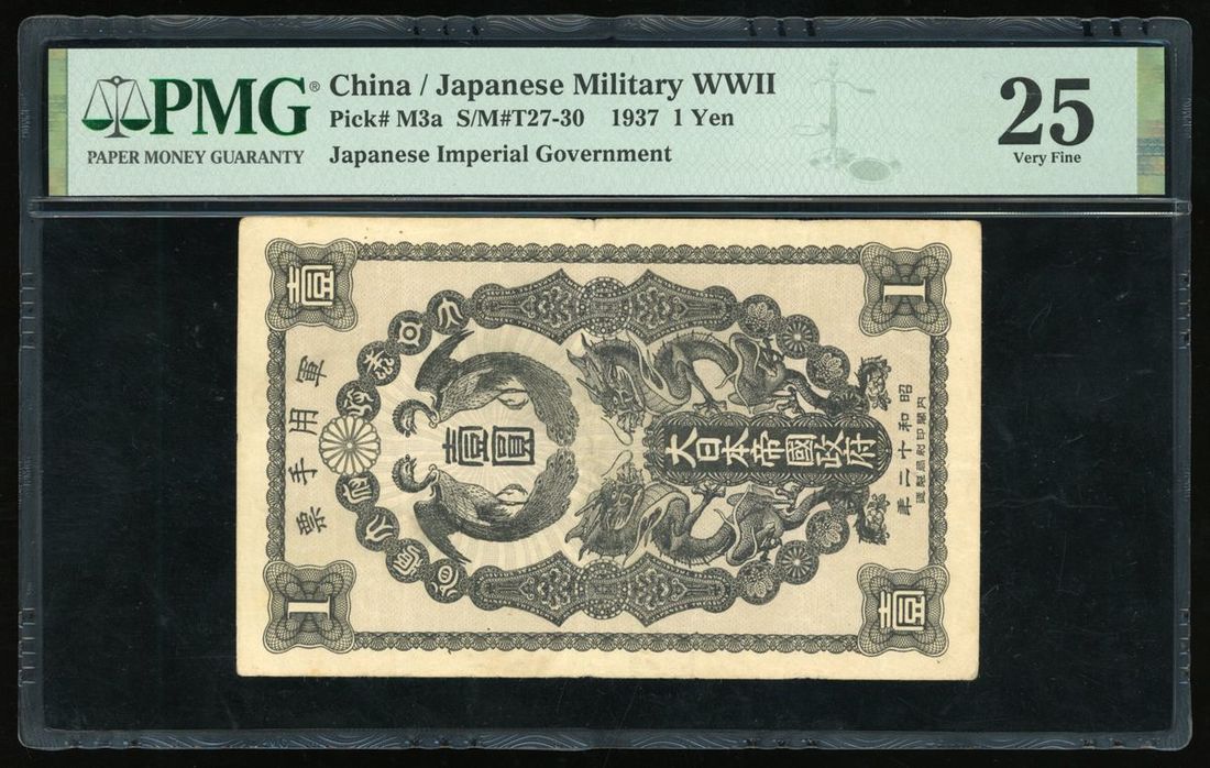 Japanese Imperial Government, China, 1 yen, 1937, Showa Year 12(1937), no serial number, (Pick M3a), PMG 25 Very Fine