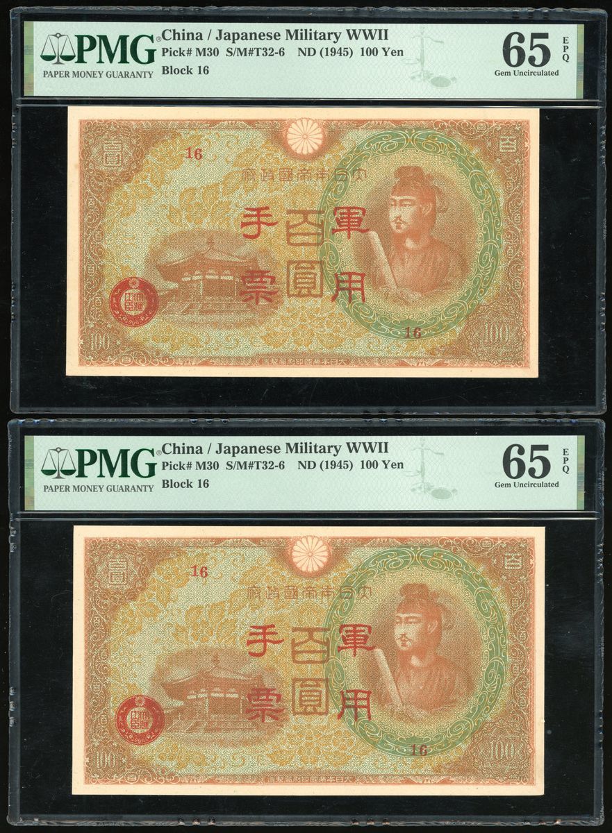 Japanese Military Issue, China, 100 Yen (3), ND (1945), block number 16, (Pick M30), PMG 65EPQ (3)