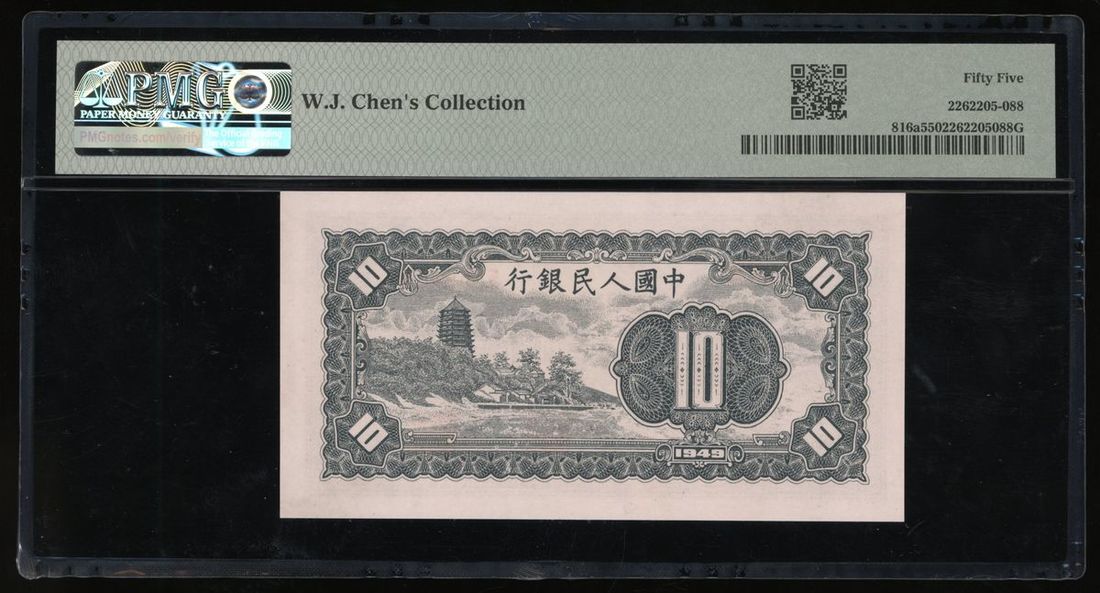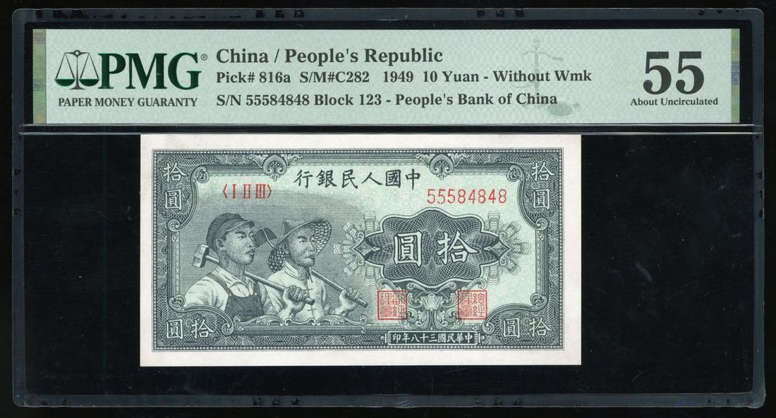 People's Bank of China, 1st Series Renminbi, 1949, 10 Yuan, "Farmer and Factory Worker", serial number I II III 55584848, 'Farmar and Factory Worker',