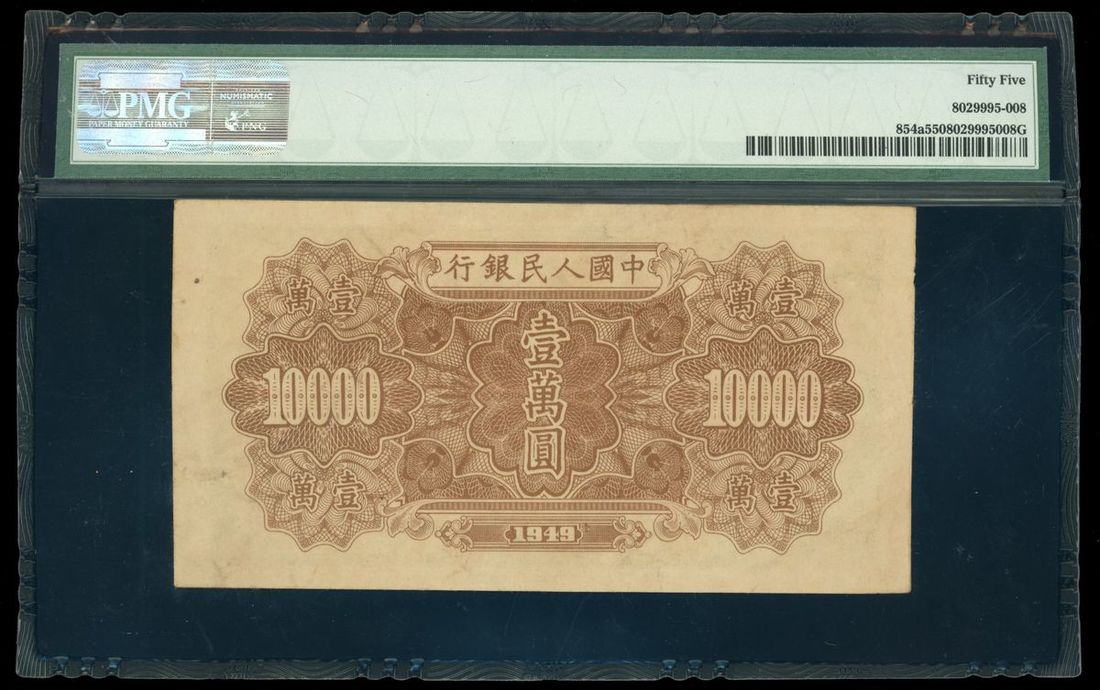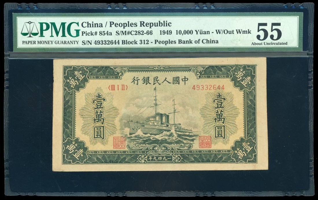 People's Bank of China, 1st Series Renminbi, 1949, 10,000 yuan, "Warship", without watermark, serial number III I II 49332644, (Pick 854a), PMG 55 About Uncirculated.