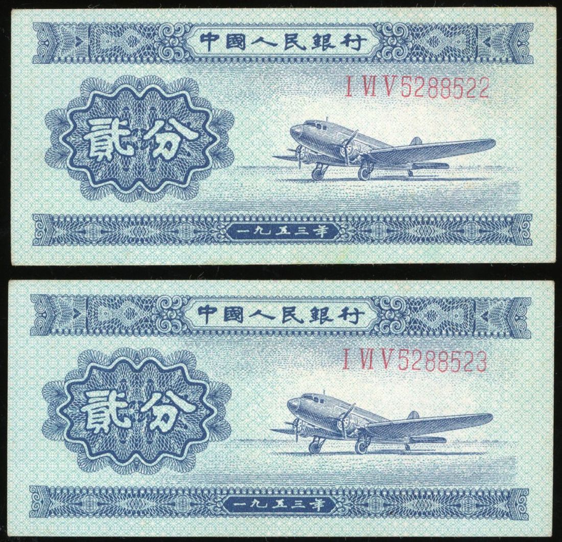 People's Bank of China, 2nd Series Renminbi, 1956, 2 fen (2), (Pick 861a), lightly pressed, about uncirculated (2)