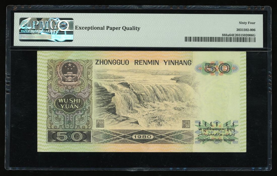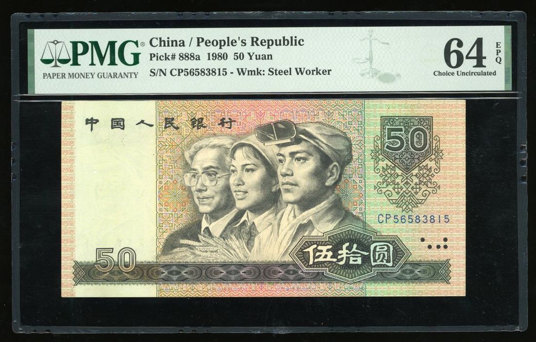 People's Bank of China, 4th Series Renminbi, 1980, 50 yuan, serial number CP56583815, (Pick 888a), PMG 64EPQ Choice Uncirculated, first prefix