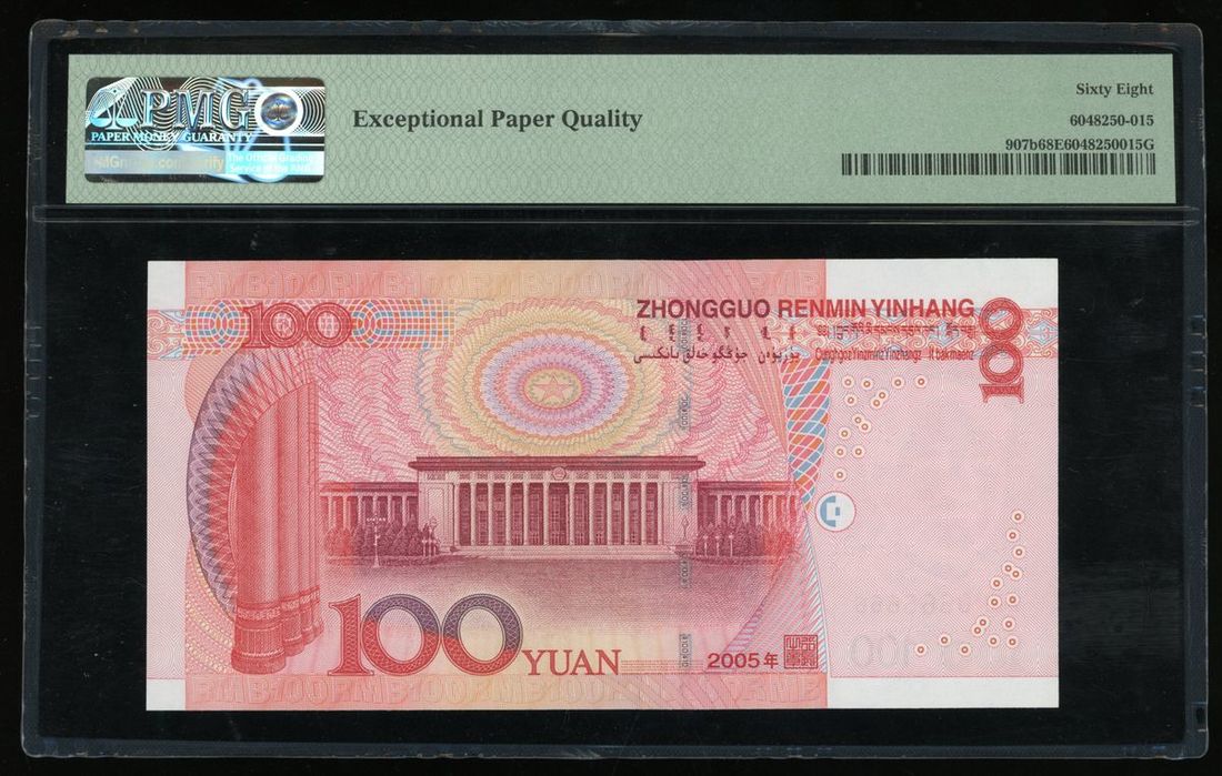 People's Bank of China, 5th Series Renminbi, 2005, 100 yuan, serial number Z2M0666666, (Pick 907b), PMG 68EPQ Superb Gem Uncirculated