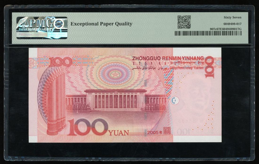 People's Bank of China, 5th Series Renminbi, 2005, 100 yuan, soild serial number Q86H888888, (Pick 907c), PMG 67EPQ Superb Gem Uncirculated