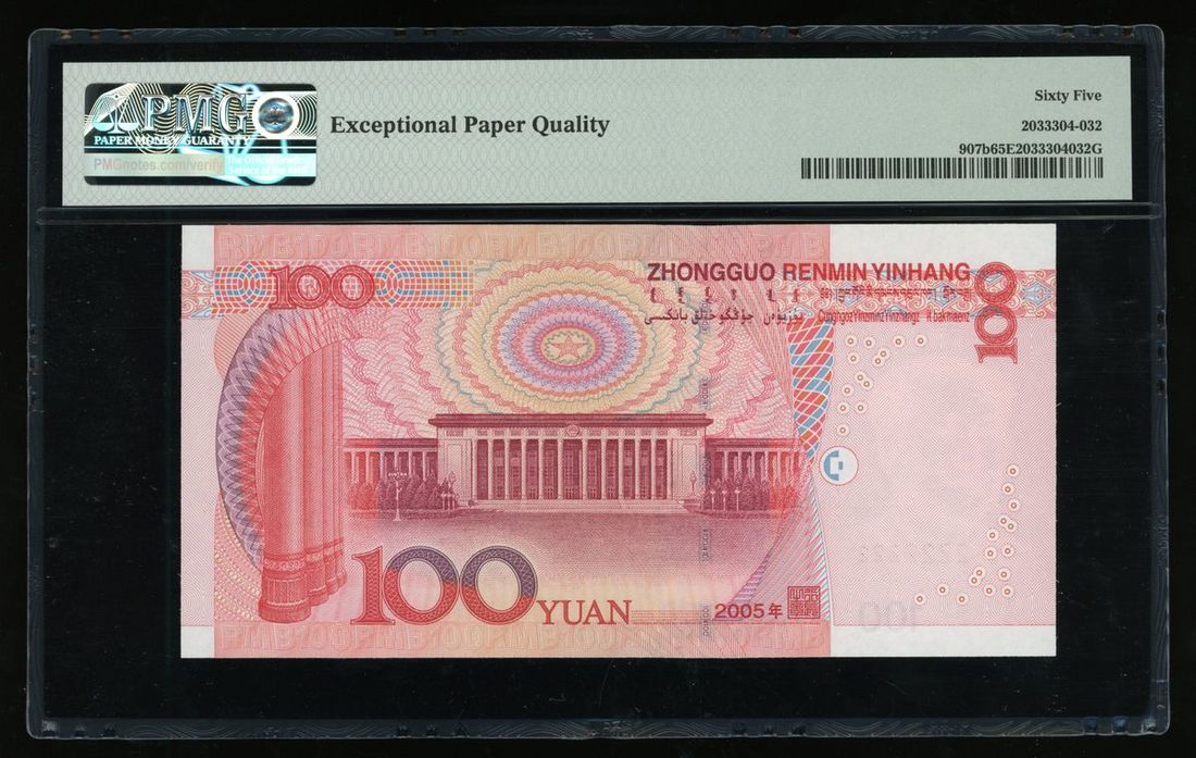 People's Bank of China, 5th Series Renminbi, 2015, 100 yuan, solid serial number C5F2222222, (Pick 907b), PMG 65EPQ Gem Uncirculated