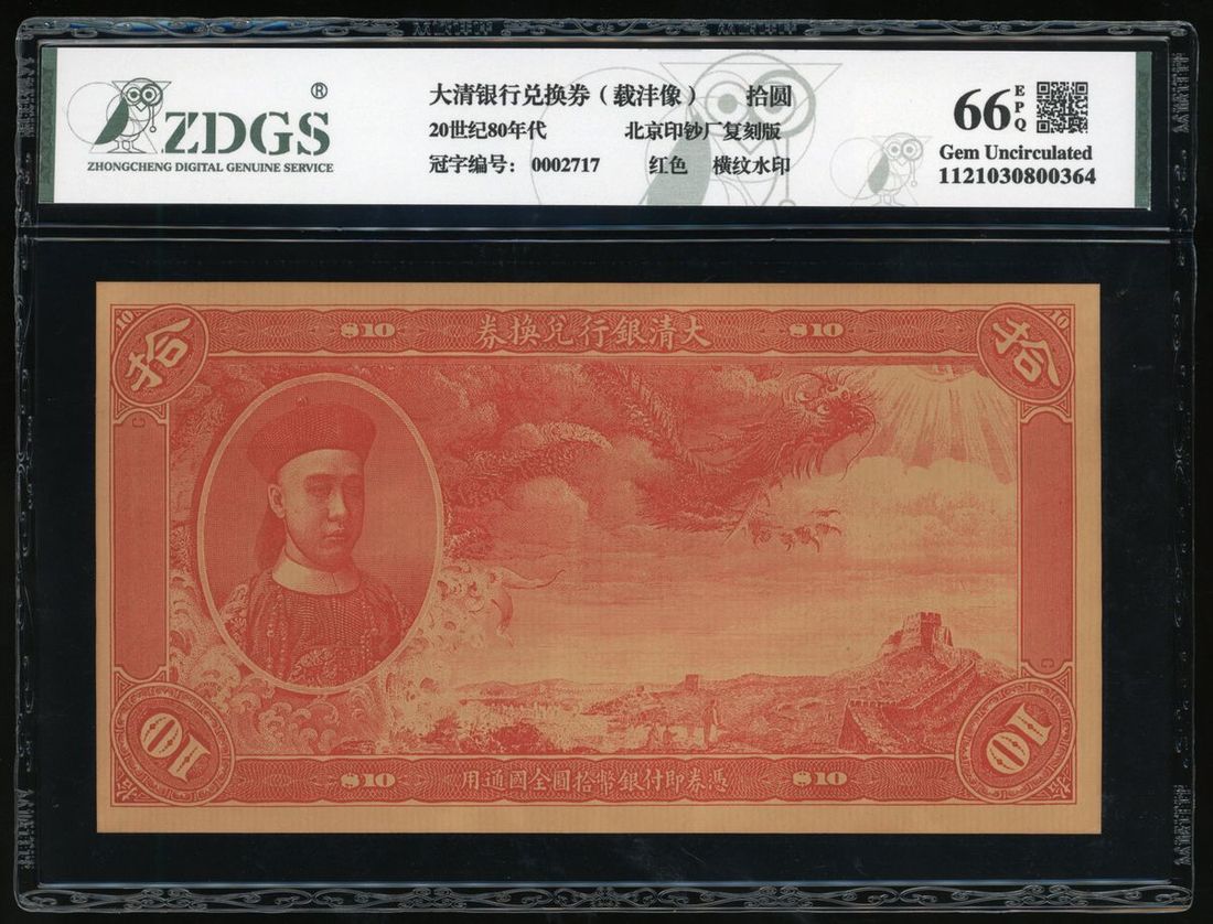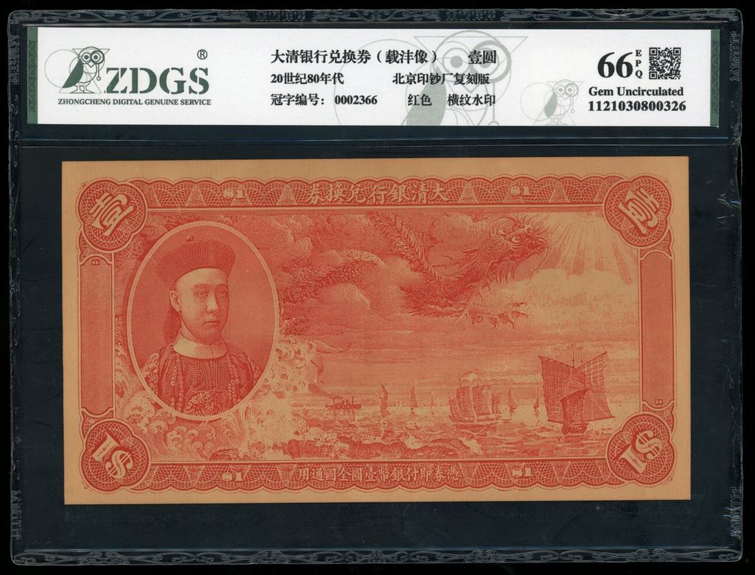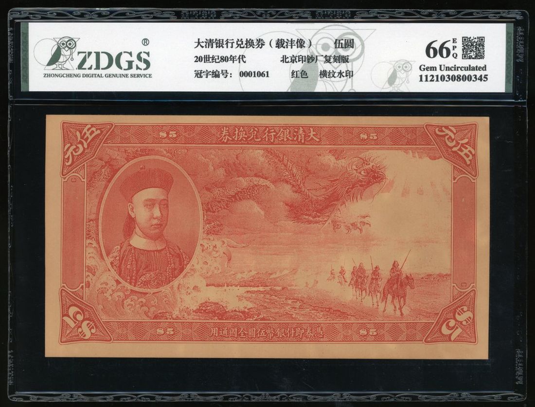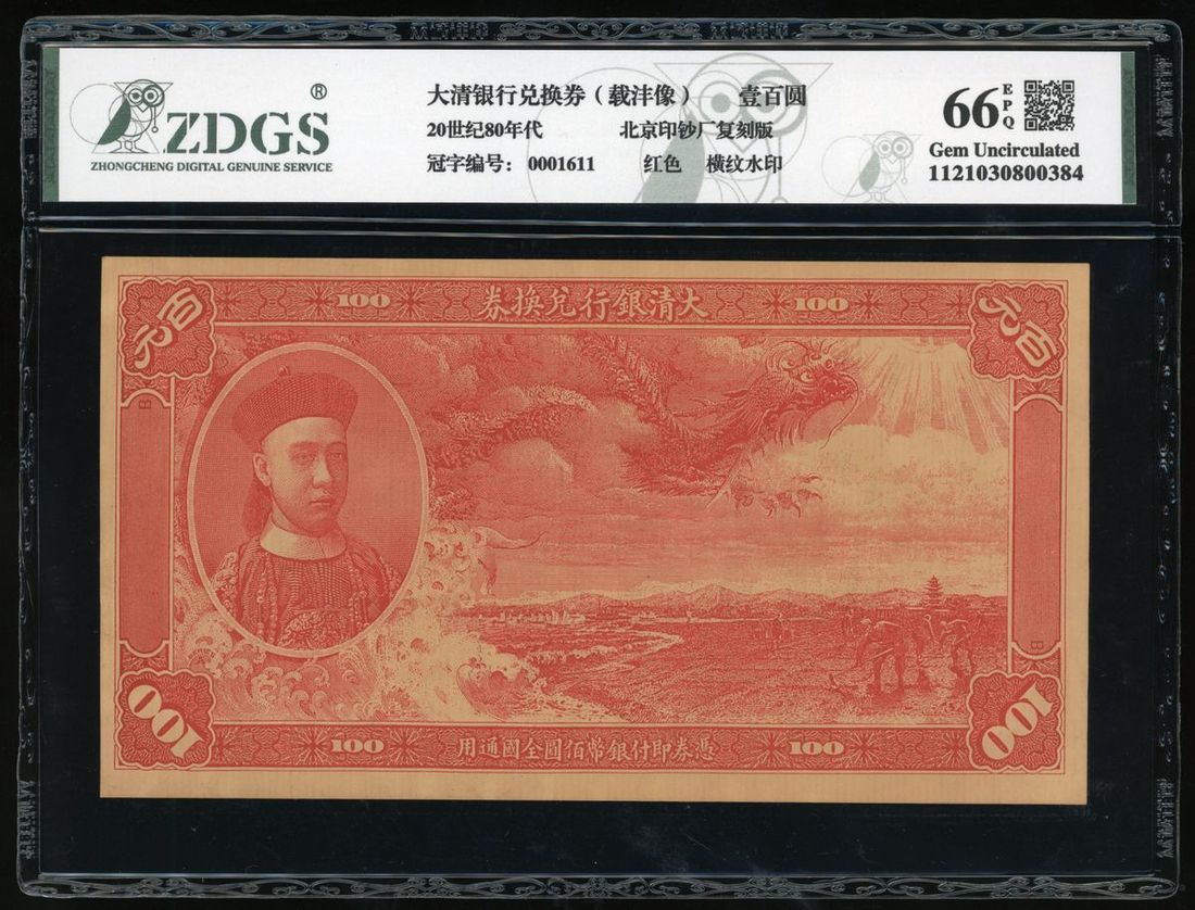 Ta Ching Bank, China, sighted banknote $1, $5, $10, $100, ND(1980), serial number 0002366, 0001061, 0002717, 0001511, all ZDGS 66EPQ Gem Uncirculated (5)
