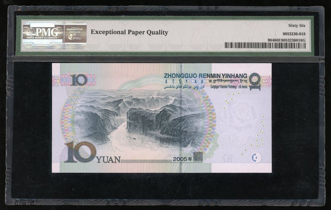 People's Bank of China, 5th series renminbi, 10 yuan, 2005, solid serial number Z0R7 777777, (Pick 904), PMG 66EPQ Gem Uncirculated