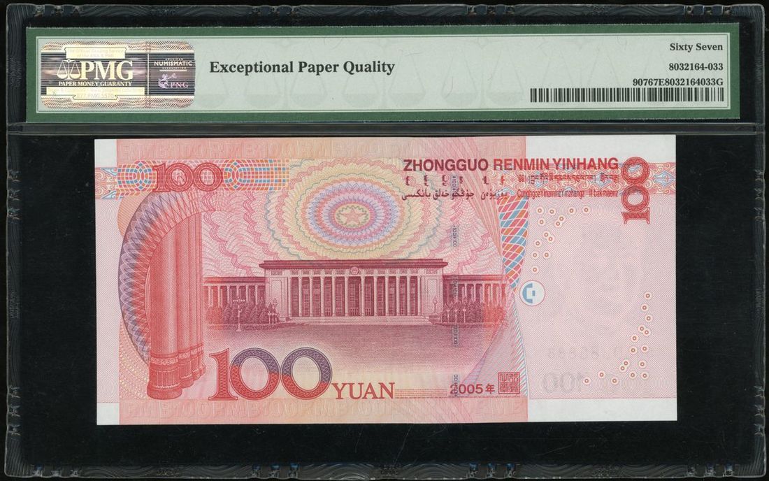 2005年中國人民銀行第五版人民幣壹百圓,幸運號 S45D888888,PMG 67EPQ