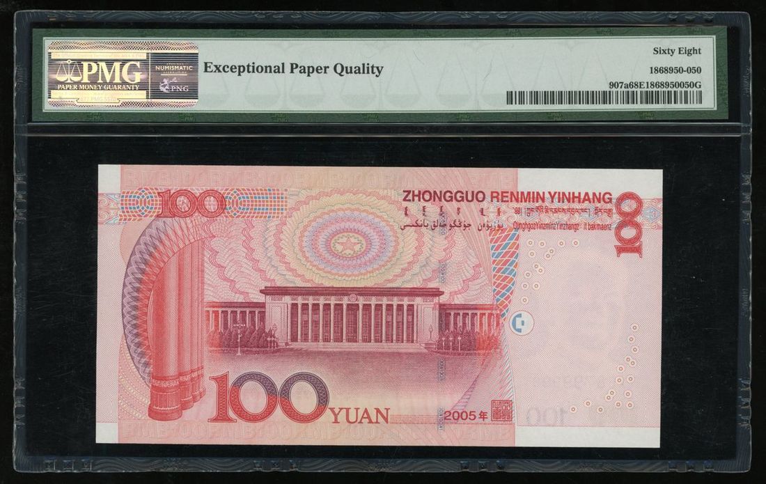 2005 年中國人民銀行第五版人民幣壹佰圓,趣味號 TX68 799999,PMG 68EPQ